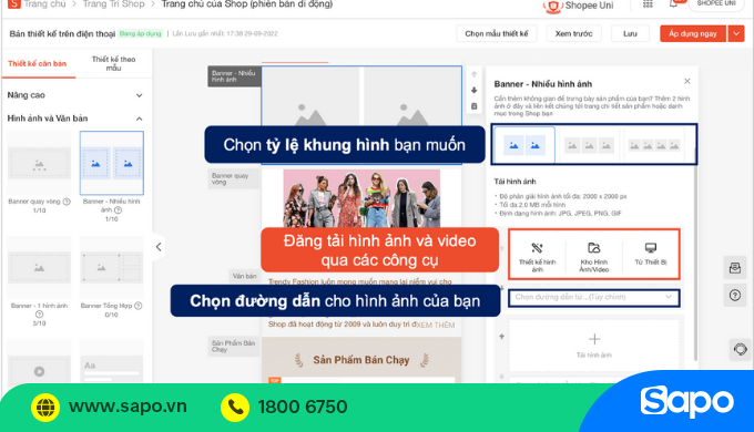 Banner nhiều hình ảnh | 2-4 ảnh, truyền đạt thông tin quan trọng (freeship, KM) | 2-4 ảnh + gắn link | 2000x2000px | 2MB/ hình | JPG, JPEG, PNG, GIF |
